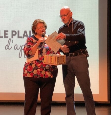 Surprise à Christiane Tisseur : fleurs remises par