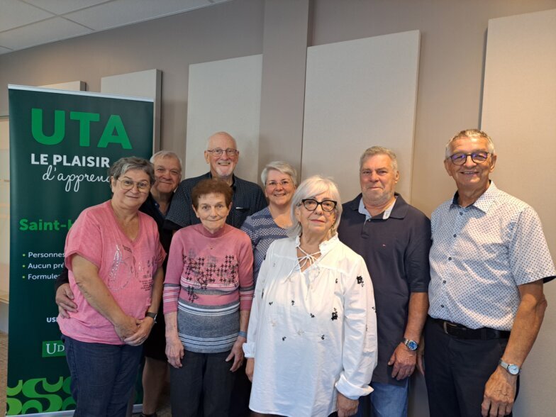 De gauche à droite : Sylvie Blanchette, secrétaire, Fernand Roireau, publicité et programmation, Marie-Thérèse Beauchemin, responsable du comité de programmation, Jean Groulx, multimédia et logistique, Lise Parenteau, présidente et programmation, Marilène Hamel, programmation, Alain Houde, représentant à l’AGEAUTAM et Jean-Marie Harvey, vice-président et trésorier.