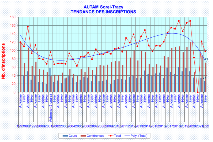 Un coup d’œil sur l’évolution du nombre d’inscriptions à nos activités.